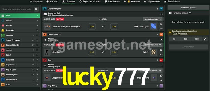 A aposta lucky777 oferece aos jogadores a experiência mais conveniente de apostas em eSports!